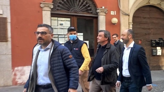 Arrivato in piazza Martiri, dove ha incontrato la gente e parlato coi giovani, prima di rispondere alle domande dei giornalisti, gli si è mostrata la nuova sede del gruppo costituita in corso Mazzini.