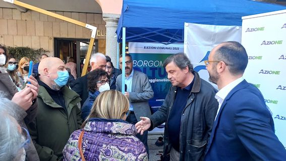 BORGOMANERO – 27-03-2022 -- Carlo Calenda, segretario del partito Azione sabato mattina, 26 marzo, è stato a Borgomanero per sostenere la candidatura a sindaco dell’esponente e già consigliere comunale Roberto Faggiano.