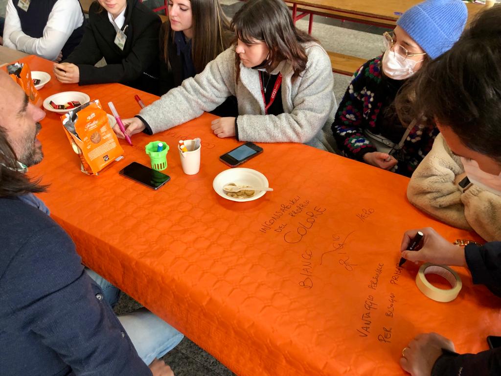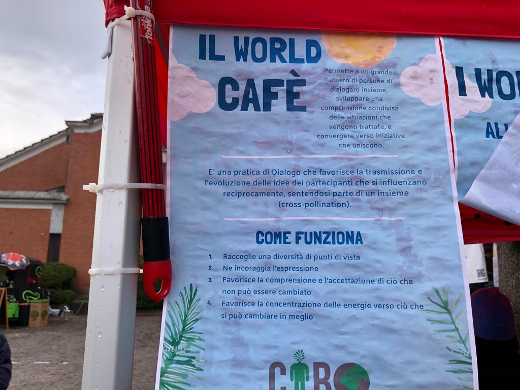 Durante la giornata alcuni studenti del Collegio Don Bosco di Borgomanero hanno inoltre guidato i “World Cafè - Luoghi di pensiero e condivisione” su temi come biodiversità, inclusione sociale, ecosostenibilità, legalità e territorio. I World Cafè hanno generato scambi di idee e opinioni tra i partecipanti, partendo da una tematica iniziale proposta. Tutti avevano la possibilità di parlare, ascoltare o scrivere sulla tovaglia di carta alcune parole chiave: un ottimo metodo ideato non solo per condividere, ma anche per creare proposte unite.