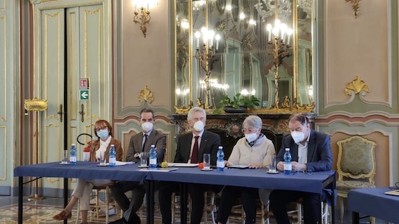 NOVARA -19-04-2022 -- Presentata nella Sala della Musica di Palazzo Bellini, a Novara, l'apparecchiatura per la radiologia domiciliare ad uso del presidio ospedaliero di Borgomanero.