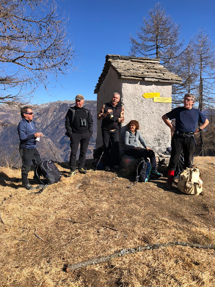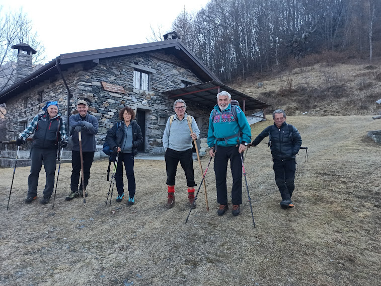 Sei anziani, sempre ben “badati” dalla nostra eroica signora, s’incontrano a Mocogna e proseguono per il comodo parcheggio di Pioi, 869, frazione alta di Bognanco. L’inizio tranquillo della camminata non ci deve ingannare.