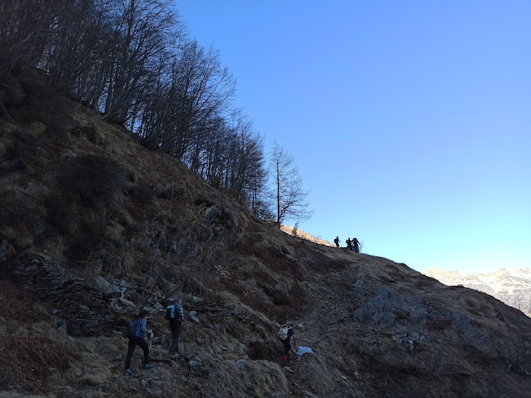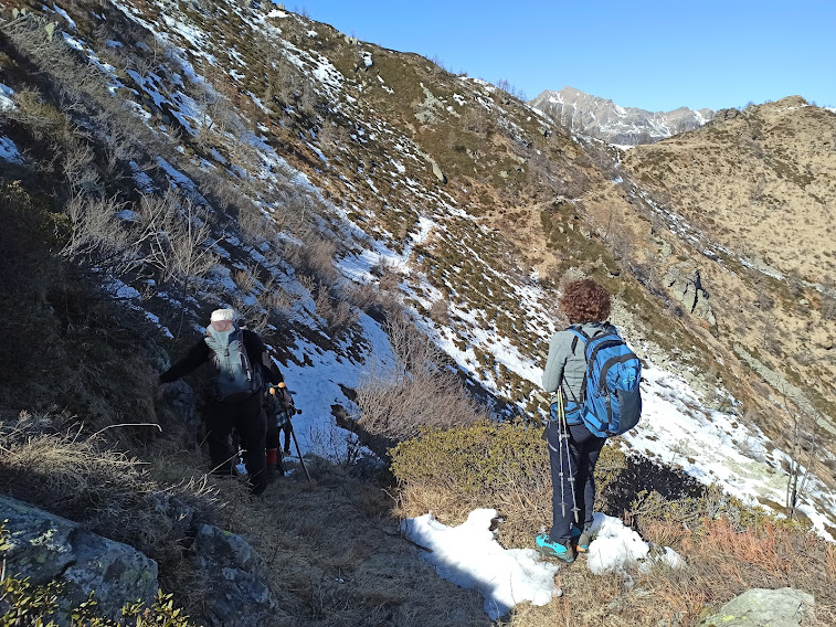 Ennesima bellissima giornata con il giusto freddo, che mancava a dicembre e gennaio. E poi cammineremo quasi tutto il giorno su un versante esposto a nord, sebbene il sole cominci ad alzarsi.