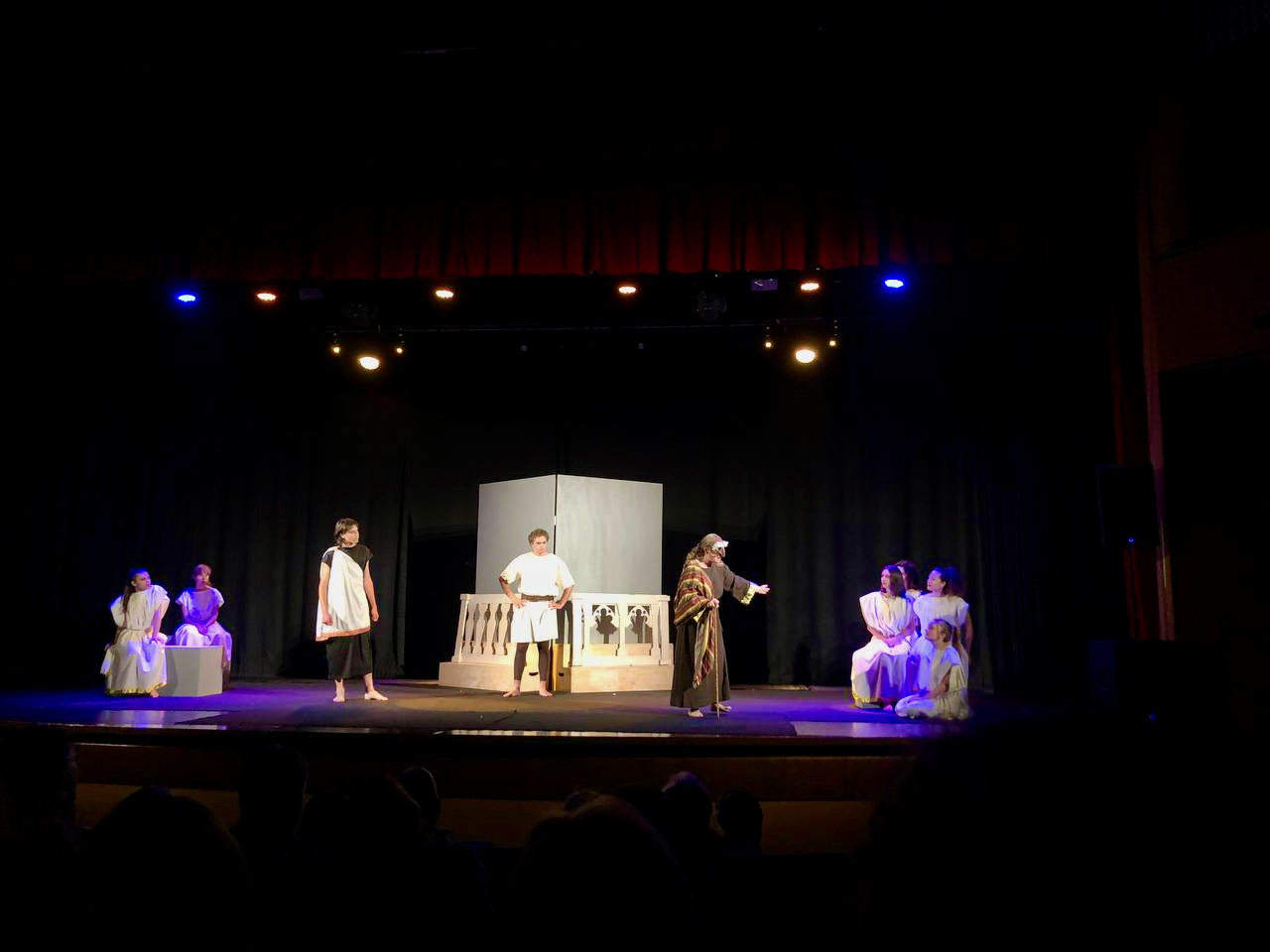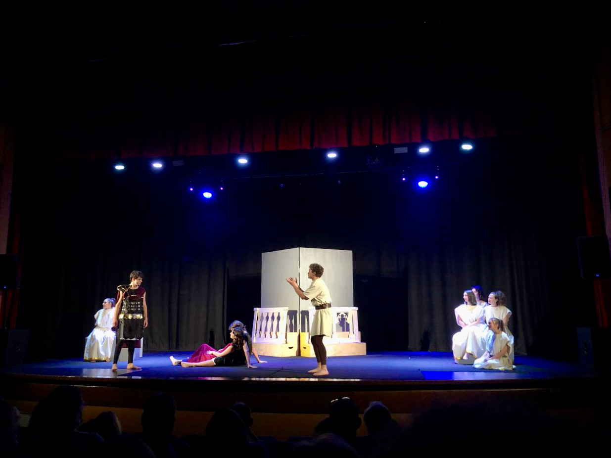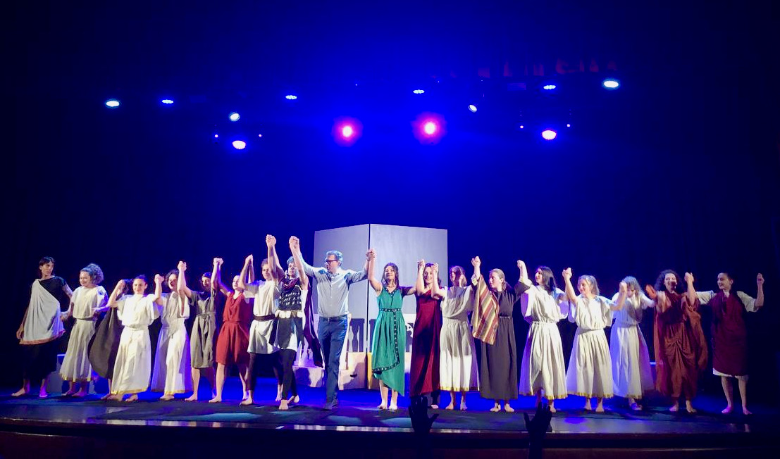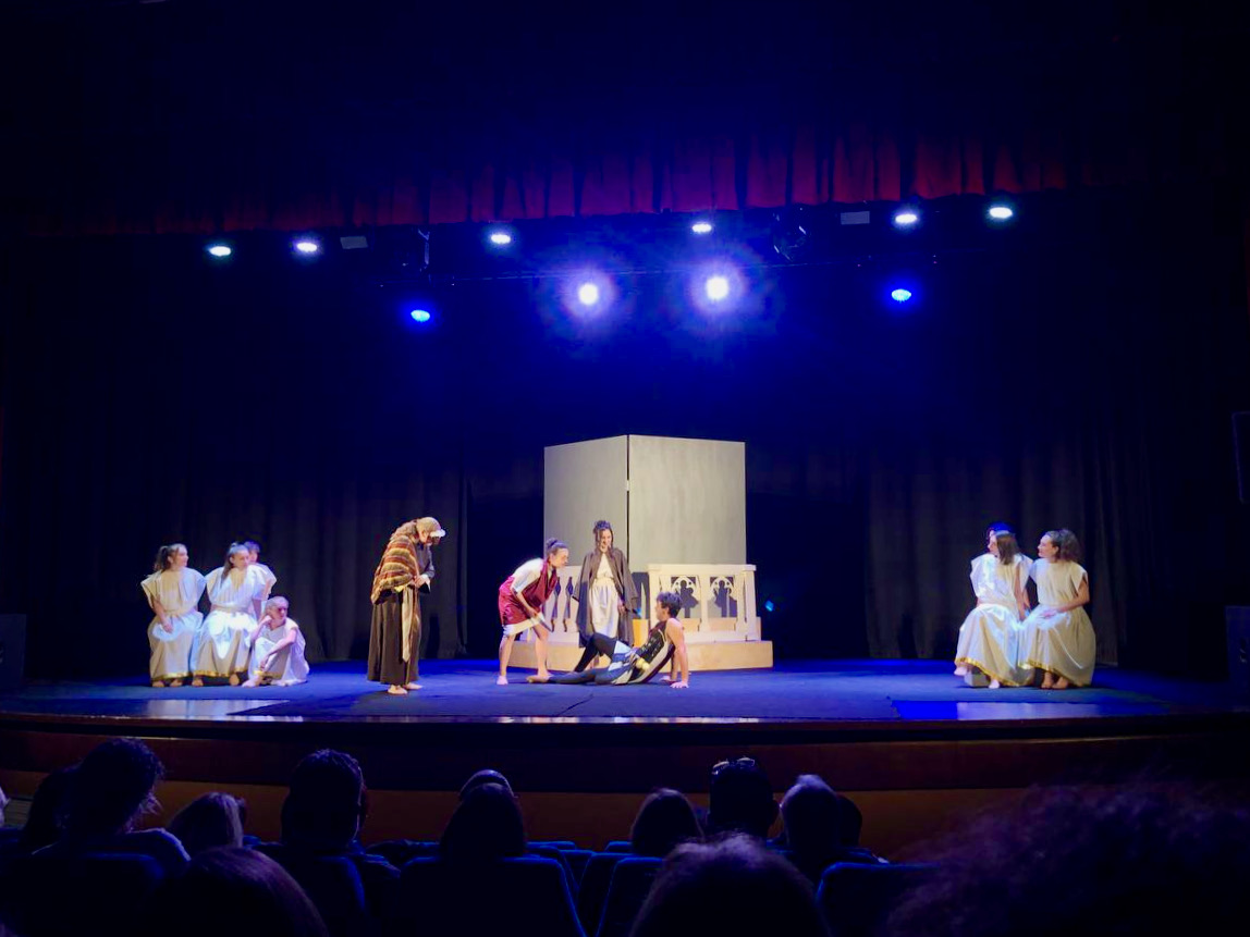 Successivamente sono saliti sul palco “i più esperti”, portando in scena il Miles Gloriosus di Plauto: testo originale di partenza con contaminazioni della commedia latina antica e la tradizione della Commedia dell’Arte in una comicità dalle gestualità accentuate e personaggi tipizzati.