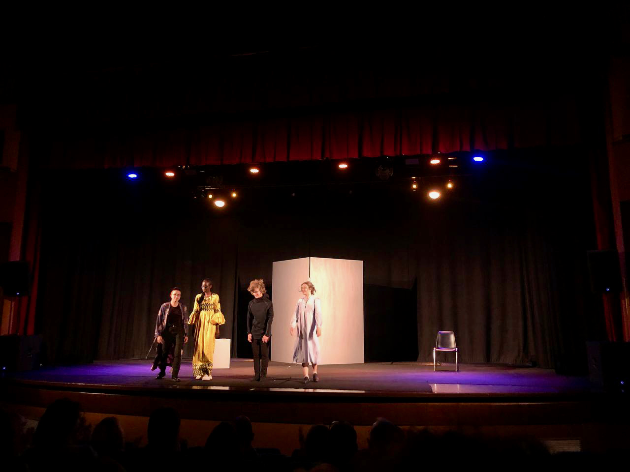 Divisa in due parti, la serata di ieri ha visto prima i giovanissimi studenti del primo anno con “Colpi di teatro”, una serie di brevi atti unici su aspetti bizzarri, buffi e farseschi dell’esistenza umana.