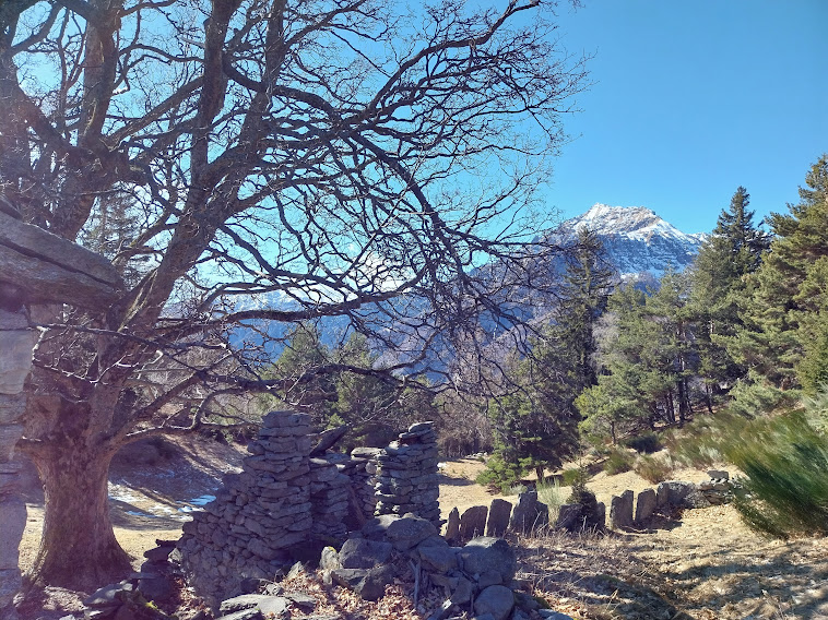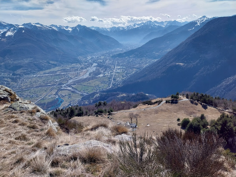 Su questo versante orientale della Colmine di Crevoladossola sono rimasti soltanto i ruderi di tante baite e i ricordi di una importante attività di alpeggio, non facilmente immaginabile. A quota 950 sostiamo brevemente, nei pressi di una piccola croce in ferro, dove si gode di un panorama superbo sull'Ossola. Dalle cartine non si capisce niente.