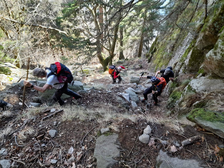 OIRA- 19-03-2023-- Un'escursione faticosa e avventurosa, su vecchi sentieri puliti da qualche anima buona, ma non segnati sul terreno e neppure sulla cartina più recente, forse perché non “accatastati”. Che ci sia di mezzo anche qui la burocrazia? Gita vivamente sconsigliata nei mesi estivi, a meno di amare il caldo, i rovi e le ginestre invadenti.