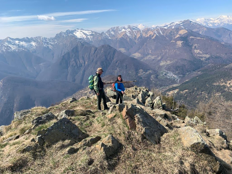 Siamo sul versante occidentale del Monte Torriggia e incontriamo esili tracce di neve. Passiamo in prossimità di Alpetta ed arriviamo sulla Costa di Torriggia, dove si trova il bivio per la vetta. Qui ci raggiunge la badante di sostegno con cui facciamo piacevolmente conoscenza e che prosegue con noi l’escursione.