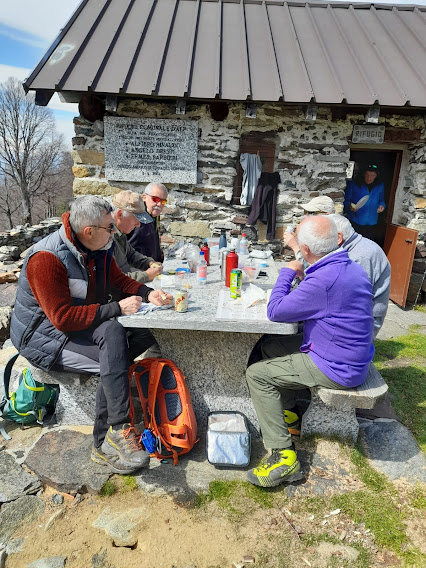 All’esterno del rifugio ci rifocilliamo moderatamente, viste le scarse calorie bruciate e nonostante il consueto splendido dessert che ha sempre con sé la badante titolare. Con calma scendiamo a Finero (un’ora e un quarto) e chiudiamo la giornata nell’ospitale bar del paese.