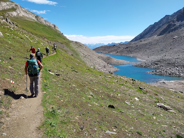 Si curano di cinque anziani soltanto la badante titolare ed il nostro presidente, che ci guida anche oggi con il suo anziano assistente acciaccato. Incrociamo le preziose vacche di Morasco – Bettelmatt e scolliniamo con una breve discesa nel grande pianoro dell’Alpe che dà il nome al celebre formaggio, 2098. Camminiamo da un’ora e un quarto. Vorrei pensare soltanto alla bellezza della nostra compagnia del giovedì ed alla bellezza della natura che ci circonda, ma sento il profumo dell’homo idroelettricus oscellanus.