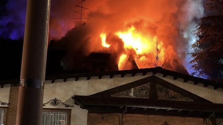 BORGOMANERO -12-01-2024 -- Fiamme al tetto di un'abitazione di via Matteotti nella serata di giovedì 11 gennaio a Borgomanero. L'incendio si è sviluppato in uno stabile che si trova sul retro del noto Ristorante Pinocchio. Sul posto sono intervenute diverse squadre dei vigili del fuoco che hanno fatto evacuare il locale e iniziato le opere di spegnimento. Una fitta colonna di fiamme e fumo era visibile anche da lontano. Ancora da definire le cause dell'incendio.