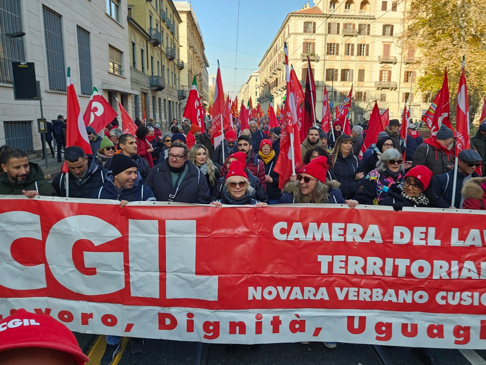 TORINO - 29-11-2024 -- A Torino è in corso la manifestazione di Cgil e Uil proclamata in occasione dello sciopero generale contro la politica economica del Governo. Ad una prima stima degli stessi sindacati sarebbe altissima l'adesione del manifatturiero (Lagostina 80%), alta nell'edilizia, manca ancora il dato del terziario mentre dal settore pubblico si parla di segnali incoraggianti a Novara ad esempio, è al 100% l'adesione al centro prelievi dell'ospedale. Come partecipazione alla manifestazione fonti sindacali parlano di 20mila presenze, oltre 600 da VCO e Novarese. I deti definiti nelle prossime ore.