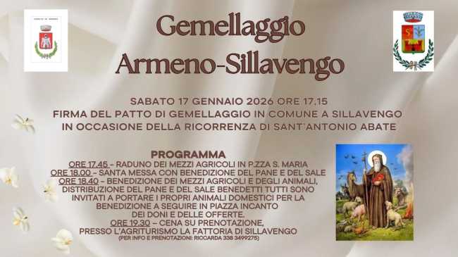 ARMENO - SILLAVENGO - 16-01-2026 --Dopo 45 anni di amicizia, i Comuni di