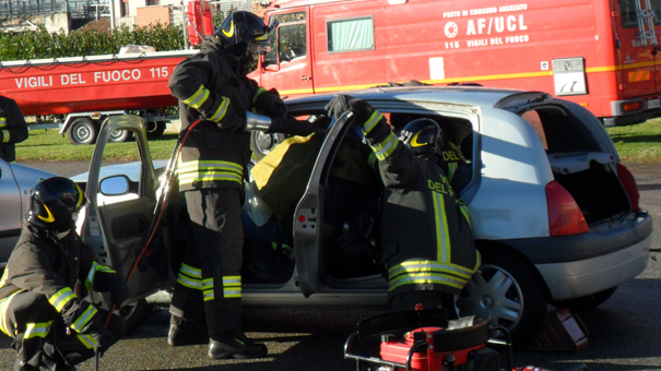 BORGOMANERO - 05-12-2018 - Scontro frontale tra due auto, un ferito incastrato tra le lamiere e i vigili del fuoco che intervengono per liberarlo. Non è il resoconto di un incidente reale, bensì un'esercitazione compiuta dai pompieri del distaccamento di Borgomanero, in occasione dei festeggiamenti per Santa Barbara, la loro patrona, e alla quale hanno partecipato quattro classi delle scuole primarie dell'Istituto comprensivo Borgomanero 2. I bambini hanno seguito con molto interesse le varie fasi dell'esercitazione, che hanno portato i vigili del fuoco a scoperchiare il tetto dell'automobile per liberare il ferito. Ad accogliere gli alunni è stato il capo distaccamento Roberto Forcetto e in seguito sono arrivati anche il sindaco di Borgomanero Sergio Bossi e l'assessore Franco Cerutti a portare il saluto dell'amministrazione comunale.