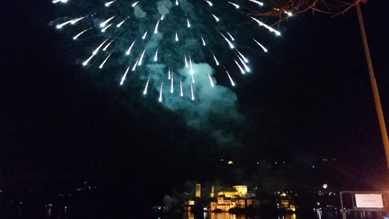 ORTA SAN GIULIO - 02-01-2019 - Il Capodanno a Orta è sempre più noto, tant'è che ha fatto registrare il tutto esaurito, almeno nei parcheggi. Il piccolo borgo si è animato intorno già dalle 22.30 di San Silvestro. La polizia locale ha controllato gli ingressi per mantenere la sicurezza, ed i Carabinieri l'ordine pubblico ammonendo chi sparava dei botti, mentre la Sogit di Cureggio ha prestato l'assistenza sanitaria. Rispetto agli scorsi anni è cambiata la band che ha suonato fino a tarda notte sotto il Palazzotto: i Factotum, hanno intrattenuto e divertito il folto pubblico presente, invece l'Asd Riviera d'Orta l'ha rifocillato ocn vin bruè, cioccolata calda e panettone. Come sempre l'ha fatta da padrone lo spettacolo pirotecnico, non musicale come quello che la scorsa estate ha inaugurato il festival dei fuochi d'artificio, ma la gente è stata tanta e soddisfatta, soprattutto per la lunghezza degli stessi che, lanciati davanti alle acque dell'isola di San Giulio sono sempre molto suggestivi.