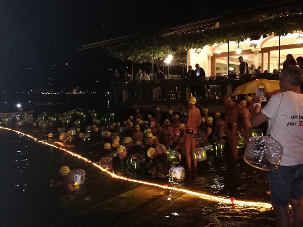 Martedì i primi a scendere in acqua sono stati gli under 14 con la nuotata denominata “Formula Tutor”, a seguire 341 atleti hanno preso parte alla seconda nuotata -quella di carattere più agonistico e impegnativo- che si è svolta su una lunghezza di 1400 m. attorno all’Isola di San Giulio e infine,alle ore 22.00, è iniziata la vera e propria “Nuotata sotto le Stelle” al buio, abbracciati da un’atmosfera decisamente suggestiva ed emozionante. Il percorso era segnato da file di luci galleggianti,i nuotatori avevano una boetta trasparente contenente 2 stick luminosi e a questa nuotata magica svoltasi su un percorso di circa 400 m., hanno preso parte 190 persone.