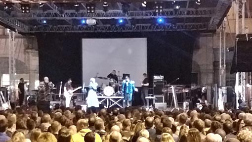 La pioggia ha minacciato tutta sera lo spettacolo, ma, eccezion fatta per pochi momenti, ha graziato lo show accompagnato dalla musica e l'ironia dei Gem Boy. Così, con un'attesa di quasi un'ora, "la Cristina nazionale" ha passato in rassegna i suoi più grandi successi. Partita con "La stella della Senna" e "Lady Oscar", ha fatto cantare tutta la piazza con "Kiss me Licia", "L'uomo tigre", "Memole", "Lupin", "Dragon ball" e poi accompagnata con le torce del millennio ha cantato "Piccoli problemi di cuore". Finale con "L'incantevole creamy", "Pollon" e "Occhi di gatto".