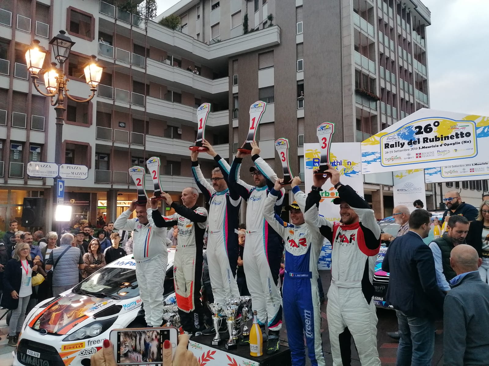 per l’ennesimo successo organizzativo. Il duo varesino della Dream One Racing realizza il “triplete” dopo i successi del 2017 e 2018: su Citroen DS3 Wrc si impongono fin dalle prime battute gestendo una vittoria mai in discussione. Bellissima la lotta per gli altri due gradini del podio: la spuntano Longhi-Leonardi e Bottarelli- Pasini. Out Caffoni per una toccata. Cento gli arrivati. Soddisfazione in seno alla Pentathlon. Il Rally del Rubinetto li celebra e li eleva tra i principali protagonisti di sempre: non può essere diversamente per Simone e Miele e Roberto Mometti che oggi, domenica 29 settembre, hanno firmato per la terza volta l’albo d’oro di una gara prestigiosa e ambita e che vantava la ragguardevole cifra di 154 iscritti. Partiti con i favori del pronostico, i Vice-Campioni Italiani Wrc hanno preso in mano le redini della corsa fin dai primi metri vincendo con apparente tranquillità le prime sei prove in programma in virtù della loro bravura, del mezzo tecnico superiore e ad una saggia gestione nella seconda metà della gara; alla fine il distacco sui secondi è di 53”3. “La vittoria è merito di tutti, dal mio naviga Mometti ai ragazzi del team: non è mai facile e riprova ne è il fatto che nonostante un buon margine di vantaggio, abbia perso un po’ di concentrazione facendo un dritto e strisciando la DS3; siamo contanti perché così completiamo una stagione per noi davvero positiva” ha detto Miele all’arrivo.
