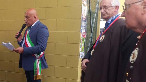 Dopo la benedizione del prevosto don Piero Cerutti, il sindaco Sergio Bossi, affiancato dall'assessore allo sport Francesco Valsesia, ha ricordato la figura di Margaroli. Fu un uomo di sport, prima sul campo e poi dopo la guerra tra i principali promotori della ricostruzione della locale società sportiva passando da cassiere a segretario e presidente (1984-1992). Nel 1975 la Figc gli conferì la medaglia d'oro al merito sportivo, nel 1992 la Lnd del Piemonte e Valle d'Aosta gli conferì il premio "una vita dedicata allo sport", nel 1997 venne eletto borgomanerese dell'anno. Infatti Nino non era solo un uomo di sport, ma un amante delle tradizioni e del territorio, tant'è che nel 2003 fu tra gli artefici della ricostruzione dell'Antica cunsurtarija dal tapulon. Per questo motivo è stato ricordato anche dal presidente di questa Associazione, Carlo Panizza. Poi il figlio Pierluigi, commosso, ha svelato la targa in sua memoria.