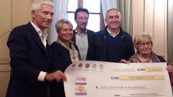 E' stato dunque consegnato alla signora Bonomi un assegno di 9 mila euro, soldi raccolti lo scorso 23 maggio con lo spettacolo di Carlo Annichini “Interclub Talent Show” che ha visto esibirsi associazioni, band, artisti e 4 giovani cantanti del territorio. Un altro assegno di 450 euro è stato ritirato da un papà dei ragazzi dell'Itis di Borgomanero che hanno collaborato alla realizzazione della serata benefica.