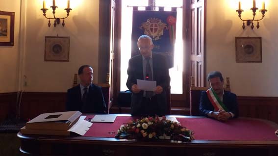 L'ingegner Vito Masseroni, fratello del defunto don Masseroni, gli ha donato un libro sulla storia della città.