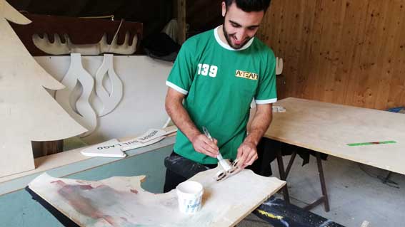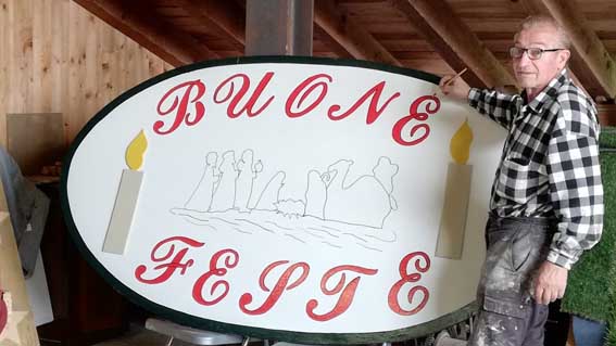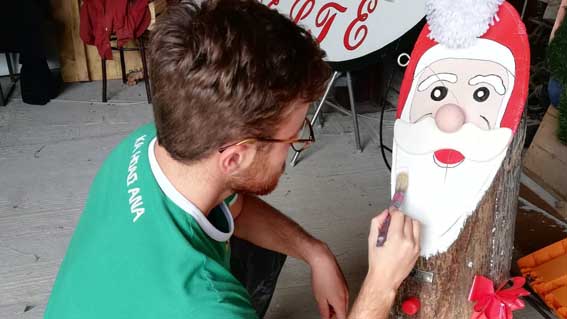 I volenterosi giovani del Gruppo sono affiancati da quelli che Falabella chiama i “maestri” che si occupano dei lavori più delicati e non adatti ai ragazzi: il fabbro Tony nella sua officina ingrassa gli ingranaggi dell’albero, salda e assembla, Giancarlo -il papà del Presepe- coordina le operazioni di verniciatura delle statue del Presepe, con una manualità meravigliosa realizza le nuove e con i giusti prodotti le tratta per renderle resistenti alle intemperie, Marco si occupa dei lavori edili, poi ancora ci sono Franco il meccanico, Paolo l’addetto alla posa della piattaforma in acqua e altri ancora…