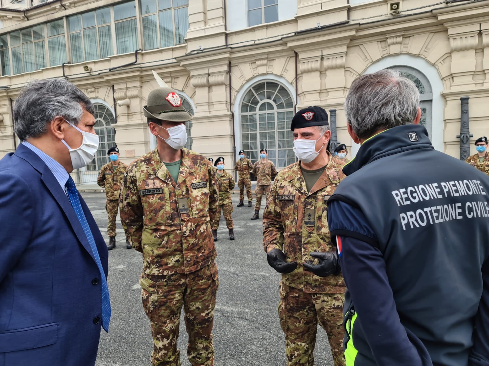 in ferma annuale del Corpo sanitario dell’Esercito e dell’Aeronautica Militare destinati alle Residenze sanitarie assistenziali (Rsa) del Piemonte, sono stati accolti questa mattina nell’aula magna del Comando per la Formazione e Scuola di Applicazione dell’Esercito, a Torino, dal generale di Divisione Salvatore Cuoci, comandante dell’Istituto di formazione, dal commissario straordinario per l’emergenza Covid-19 Vincenzo Coccolo e dall’assessore alla Sanità della Regione Piemonte, Luigi Genesio Icardi, alla presenza del comandante della Brigata alpina Taurinense generale Davide Scalabrin, e del colonnello Fabio Zanichelli in rappresentanza dell’Aeronautica Militare.