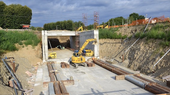 domenica 23 agosto, i lavori di posizionamento del monolite (32 metri di lunghezza per 3500 tonnellate, spinto da una serie di martinetti con un percorso di 80 centimetri-ora) del sottopasso ferroviario della linea Novara- Domodossola in zona Foro Boario. Terminerà invece nel pomeriggio odierno la sistemazione dell'altro monolite tra le vie Pennaglia e Verdi (zona San Marco).