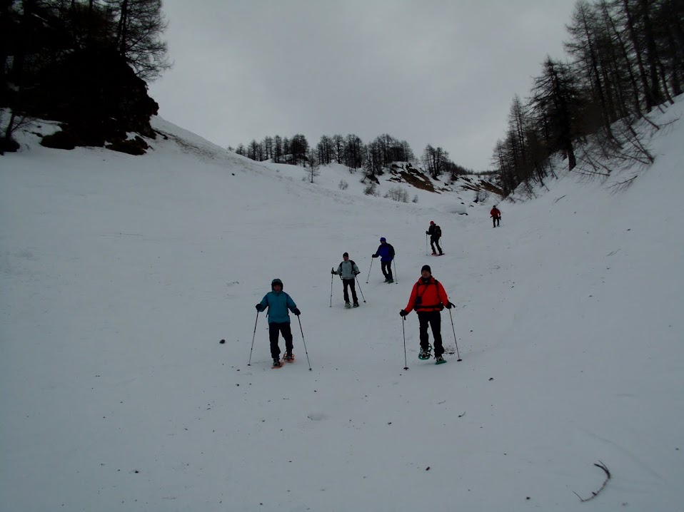 Sul ripido il gioco si fa duro e qualche ciaspolatore anziano, dotato di scarso feeling con la neve, soffre non poco, ma senza mollare. Qualcuno ricorda il film thriller danese “Il senso di Smilla per la neve” e ne sortisce subito il soprannome che, ancora oggi, accompagna l'amico più in difficoltà. Smilla è uno di noi. Un venticello freddo in vetta riduce al massimo la sosta e le foto sono ridotte all'osso e lontane dalla infida cornice protesa verso il lago d'Agaro, oltre 700 metri sotto di noi. Il gelo non molla e la prudente discesa dura abbastanza: la neve non è delle migliori per gli sciatori. Al parcheggio la consueta attesa dei ciaspolatori non è particolarmente lunga.