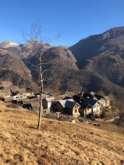 Sei anziani, sempre ben “badati” dalla nostra eroica signora, s’incontrano a Mocogna e proseguono per il comodo parcheggio di Pioi, 869, frazione alta di Bognanco. L’inizio tranquillo della camminata non ci deve ingannare.