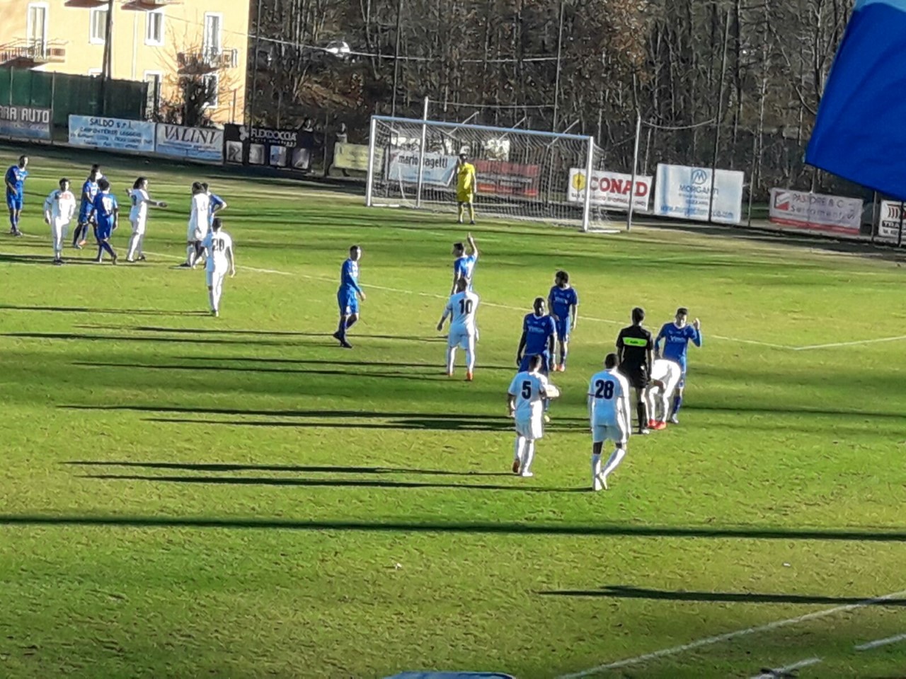 fa 17, ovvero le vittorie consecutive in casa nel 2017, perde la gara con il Como e perde la vetta della classifica da quando è iniziato il torneo. Puo’ solo consolarsi con l’incasso perché da tempo non si vedeva tanta gente al D’Albertas. Vince il Como che si rilancia in classifica che porta nel gruppone anche la Pro Sesto (vincente a Voghera) e la Caratese, mentre scappa la Caronnese (3-0 a Borgaro). Partita nervosa e dai contorni maschi, con il Como che parte subito bene con Baradaschia che impegna dalla distanza Gilli e pronta risposta al 13’ di Capogna (alto di testa). Como che cerca il successo, mentre il Gozzano appare attendista. Nei cusiani manca Lunardon , letale nelle ripartenze, un’assenza più importante delle due comasche (Sentinelli e Cecconi) che si rivelerà determinante nell’economia del match. Infatti Capogna si ritrova a giostrare spesso contro due difensori lariani, mentre Perez agisce troppo distante dalla porta e Vita, preferito a Gulin che forse avrebbe dato maggior fantasia alla squadra, finisce per pestare i piedi al centroavanti di casa e risulta inconcludente. Nell’economia della gara pesa poi la brutta giornata di Petris, pasticcione in difesa, poco fluidificante in attacco. E cosi’ Guitto si ritrova a predicare spesso nel deserto: con gioco orizzontale o lunghi lanci. Il Como è più intraprendente. Al 20’ Molino impegna dalla distanza Gilli e al 30’ Fall puo’ raddoppiare, ma il portiere è bravo a chiudergli lo specchio in uscita. Al 40’ il Como raggiunge il vantaggio, tutto sommato, meritato: corner di Gentile, gigantesca mischia in area, risolve Molino con un colpo da biliardo che si infila tra una salva di gambe. La ripresa inizia con il Gozzano subito a reclamare un rigore con Guitto: verrà ammonito, ma Fall in contropiede sciupa il 2-0. Al 53’ arriva il pari della capolista: Capogna raccoglie un pallone in area, lo difende spalle alla porta e poi calcia forte ,ma il portiere ospite si fa sorprendere sul proprio palo ed incassa l’1-1. Ora il Gozzano vorrebbe capovolgere le sorti del match approfittando di un calo fisico dei lariani che hanno giocato il recupero in settimana, ma al 60’ Fall sorprende la distratta difesa di casa, salta Mikhaylovskiy e batte Gilli. Manca mezz’ora, ma non succederà più nulla. Il Gozzano si sgonfia, attacca per vie centrali senza costrutto, il Como si mette a 5 in difesa e Capogna non ha più spazi, mentre Vita continua a sbattere contro il muro lariano. Il Como gioca di mestiere, mette in apprensione la retroguardia di casa con Gobbi e chiude senza affanni se si eccettua qualche mischia da calcio piazzato. Caronnese che sale a 38, stacca il Gozzano a 35, insidiato da Pro Sesto 32, Como 30, Caratese 27. Il campionato è aperto. Ora il Gozzano deve tornare al successo a Tortona, prima di ricevere la Caronnese al D’Albertas.