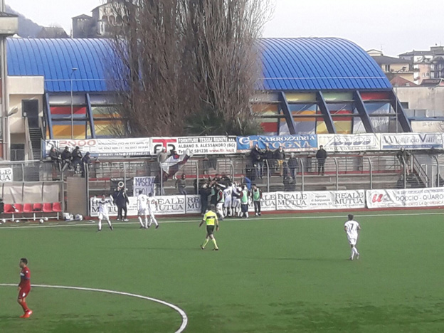 Piemonte giocata oggi (A in lutto) con il Borgosesia che centra il terzo successo di fila aggancia quota 43 e puo’ festeggiare quasi la salvezza. Borgosesia meritatamente al successo che sblocca la gara solo nel finale e comunque soffre il Pavia solo nel finale del I tempo e nei minuti vicini al 90’. Ad inizio gara ci prova subito pensa Vitali con una punizione fuori di poco. Al 13’ prima Procaccio indirizza a lato, dopo Clausi calcia debolmente dalla distanza. Azione tambureggiante dei granata alla mezz’ora. Luppi in rapida successione respinge i tiri ravvicinati di Procaccio e Vitali, l'azione si conclude con Tampellini che non inquadra lo specchio della porta e calcia fuori. Nel finale di frazione, il Pavia si fa vedere con una punizione a lato di Ganci e un diagonale di Damo, parato a terra da Libertazzi. A inizio ripresa, Vitali reclama il rigore per una trattenuta di Mapelli. Borgosesia ancora vicino al gol al minuto 13' quando Procaccio ruba il tempo a Scognamiglio, va via in velocità entra in area e serve l'accorrente Vitali che non finalizza. Passano due minuti e Vitali, pescato da Clausi, ci prova al volo mettendo fuori di poco. Granata ancora pericolosi fino al gol al 37’. Sabato non respinge in tempo e Vitali é il più lesto di tutti ad avventarsi sul pallone e battere Luppi per l'1-0 valsesiano. Finale con Pavia vicino al pari : al 42’ prima El Kayari viene chiuso da Salatrelli e Libertazzi con la palla che termina a lato di poco e dopo Ramponi in mischia colpisce la traversa con i lombardi che reclamano il rigore. Nel recupero Pagnotta sfiora il 2-0 in contropiede. Nell’altra gara disputata successo della Caronnese a Seregno che avvicina Como e Gozzano fermate dalla neve.