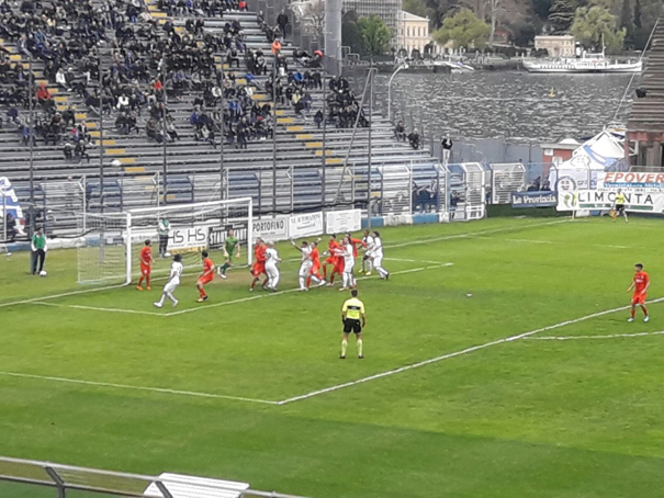 indenne dal Sinigaglia di Como, ma che non chiude i conti con i lariani in 10 per oltre un’ora. Non sono bastati oltre 3000 spettatori per spingere alla vittoria il Como contro la capolista Gozzano che ha tenuto meglio il campo, ma non è riuscita a trovare il guizzo vincente quando i padroni di casa sono rimasti in inferiorità per uno sciagurato manrovescio di Anelli su Segato avvenuto a centrocampo sotto gli occhi dell’arbitro. La gara che valeva la serie C ha visto il Gozzano dimostrare sul campo di essere superiore ai lariani che non sono mai riusciti ad esprimere un gioco corale e solo nei minuti finali hanno messo in sofferenza la capolista. Como che si presenta con un 3-5-2 che dovrebbe dargli la supremazia del centrocampo, ma in realtà sarà il Gozzano con Guitto, Segato e Perez a menare le danze, con Evan’s schierato a sorpresa al posto di Messias pronto ad incidere sulla fascia , mentre dall’altro lato Petris ha licenza di spingere. Cosi’ Gilli non correrà quasi mai pericoli protetto da un ottimo Gigli e dal rientrante Emiliano. Il Como prova a spingere sulla fascia con Bovolon e Di Nuzzo, ma senza costrutto. Così il caldo pubblico di Como (che aveva in curva ospiti del club gemellati di Lucerna e Latina), rimane subito ghiacciato dalla prestazione senza paura degli uomini di Gaburro. Al 6’ Evan’s manda alto di testa. Como che non riesce ad elaborare gioco ed il pallino è sempre degli ospiti: al 13’ Lunardon pesca Evan’s in proiezione offensiva, ma l’assist dell’esterno è respinto dalla difesa. Sempre il francese pericoloso: lo serve Perez, ma l’attaccante scivola al momento del tiro. Al 18’ la miglior occasione: da Emiliano in area per Capogna che di testa manda centralmente da buona posizione. Si vede finalmente il Como al 23’: tiro velleitario di Buono che finisce sul fondo. Al 31’ nuova occasione ospite: Cicconi perde palla nella propria tre quarti campo, Guitto è lesto a rimettere la sfera in area, ma tutti gli attaccanti sono in ritardo. Al 33’ l’episodio che potrebbe cambiare le sorti del match: Anelli, dopo un contrasto, colpisce con un pugno Segato a palla lontana. Rosso diretto con pubblico imbufalito, ma le immagini delle Tv locali dimostrano che il difensore ha colpito direttamente e senza motivo il centrocampista che aveva già avuto degli scontri vivaci con Sentinelli. Con il Como in dieci, Andreucci toglie Buono e mette D’Aiello, un difensore. Il Gozzano cerca di forzare i tempi: sempre Evan’s sulla fascia Capogna alza la mira di testa (38’). Al 43’ finalmente uno spunto del Como : Cicconi salta tre avversari, ma viene steso al limite dell’area. La punizione è senza esito. Nella ripresa il Como arretra il suo raggio d’azione. Il Gozzano non sa però sfruttare la superiorità numerica per chiudere il match ed il campionato. Ci prova Evan’s (51’ alto), poi al 67’ lo stesso esterno francese ostacola Perez al momento del tiro. Solo nel finale il Como si riaffaccia in area: errore di Petris, palla a Gentile, ma Emiliano salva (l’arbitro però aveva fischiato un off side). Nel recupero due mischie fanno venire i brividi ai tifosi novaresi al seguito, ma il Como, spuntato , con poco gioco e pure stanco, non sfonda. E così a tre gare dalla fine il campionato rimane aperto. Gozzano con più 2 sul Como e più 4 sulla Caronnese (2-1 al Borgaro), che tra 15 giorni affronterà sul proprio terreno proprio la capolista. Nelle altre gare dramma per Varese e Casale: le due nobili decadute sconfitte a Seregno e Arconate sono sempre più nei play out. Il Borgosesia pareggia in rimonta 2-2 con il Castellazzo con reti di Vitali e Pagnotta. Chieri e Pro Sesto oramai nei play off.