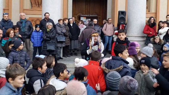BORGOMANERO - 07-01-2019 - Tanta partecipazione ieri pomeriggio, domenica 6 gennaio, per la festa sacra e profana dell'Epifania. Alle 15.30 in collegiata c'è stata la rappresentazione dei Re Magi organizzata dai ragazzi dell'oratorio, dal coro Voci del Borgo e dal Gruppo chiricchetti, coordinati da Tommaso Sabatino a cui è seguita la benedizione dei bambini da parte del prevosto Piero Cerutti e don Marco Borghi. Uscendo, sul sagrato della chiesa, l'arrivo della befana alias Paolo Mandelli che ha fatto giocare i tanti bambini accompagnati dai propri genitori. La Pro Loco della presidente Stefania Zoppis ha preparato cioccolata calda, panettone e offerto tante caramelle a tutti. All'evento conclusivo de “Il Natale che non ti immagini” in rappresentanza del Comune ha partecipato l'assessore Francesco Valsesia.
