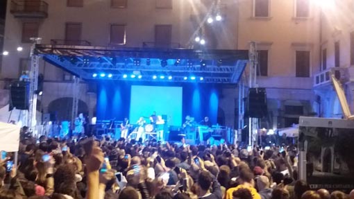 La pioggia ha minacciato tutta sera lo spettacolo, ma, eccezion fatta per pochi momenti, ha graziato lo show accompagnato dalla musica e l'ironia dei Gem Boy. Così, con un'attesa di quasi un'ora, "la Cristina nazionale" ha passato in rassegna i suoi più grandi successi. Partita con "La stella della Senna" e "Lady Oscar", ha fatto cantare tutta la piazza con "Kiss me Licia", "L'uomo tigre", "Memole", "Lupin", "Dragon ball" e poi accompagnata con le torce del millennio ha cantato "Piccoli problemi di cuore". Finale con "L'incantevole creamy", "Pollon" e "Occhi di gatto".