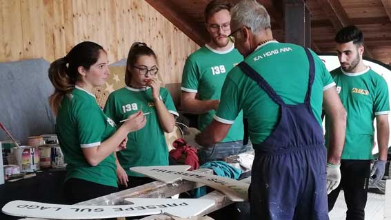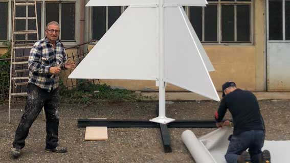 I volenterosi giovani del Gruppo sono affiancati da quelli che Falabella chiama i “maestri” che si occupano dei lavori più delicati e non adatti ai ragazzi: il fabbro Tony nella sua officina ingrassa gli ingranaggi dell’albero, salda e assembla, Giancarlo -il papà del Presepe- coordina le operazioni di verniciatura delle statue del Presepe, con una manualità meravigliosa realizza le nuove e con i giusti prodotti le tratta per renderle resistenti alle intemperie, Marco si occupa dei lavori edili, poi ancora ci sono Franco il meccanico, Paolo l’addetto alla posa della piattaforma in acqua e altri ancora…