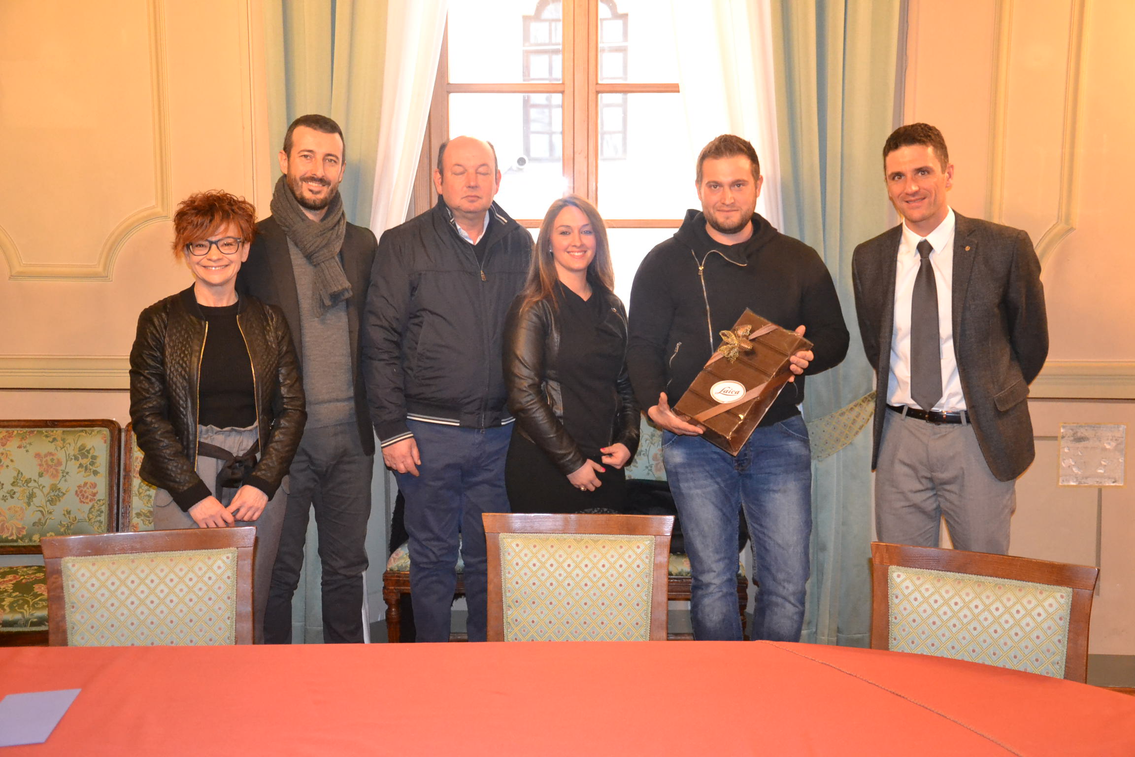 BORGOMANERO- 07-01-2017- Si chiama Valentina Guerrieri di Briga Novarese la vincitrice del concorso Golden Ticket, iniziativa che ha accompagnato il Dicembre Borgomanerese 2016 “al Cioccolato”, con la frase “I bambini pensano che il paradiso ha il colore del cielo e il sapore del cioccolato”. Valentina si è aggiudicata un soggiorno all’Hotel Mirtillo Rosso di Riva Valdobbia. Al secondo posto l’impresario edile di Boca Francesco De Magistris con la frase “La pazienza è come il cioccolato: non è mai abbastanza”. Una tavoletta di cinque chili di cioccolato fondente era il premio. Sul terzo gradino del podio Francesca D’Alessandro di Borgomanero che ha vinto una visita personalizzata alla fabbrica di Cioccolato Laica di Arona. Sua la frase “Se vuoi una vita felice devi dedicarla ad un obiettivo: avere sempre un cioccolatino nel cassettino del cucinino”. In sessanta esercizi commerciali della città era stata offerta una tavoletta di cioccolato (sono state distribuite seimila tavolette), realizzata dall’azienda Laica di Arona per conto del Comune di Borgomanero e di Ascom, in edizione limitata, all’interno della quale era possibile trovare un biglietto d’oro, come nel celebre film natalizio “La Fabbrica di Cioccolato”. Il Golden ticket era stato trovato nelle tavolette distribuite al Bar Mood di corso Garibaldi (Valentina Guerrieri); Bistrot 58 di corso Roma (Francesco De Magistris) e Bruna Travagin “Compagnia della Bellezza” di via Veneto (Francesca D’Alessandro). Al termine della premiazione è stato consegnato un riconoscimento, da parte del Comune di Borgomanero per mano dell’assessore Filippo Mora, ai gestori del bar Mainelli-Frigidarium Daniele Ghelma e Rosita Cruppi, per il loro impegno nel realizzare la meringa da record (265 metri per 8000 porzioni) nella giornata di domenica 18 dicembre: “Ringrazio l’industria Laica di Arona, i commercianti, le Associazioni e la Pro Loco che hanno contribuito a queste iniziative – ha affermato l’assessore al Commercio, Filippo Mora – il Dicembre Borgomanerese 2016 è stata un’idea nuova e originale, un tema alternativo che ha avuto successo”.