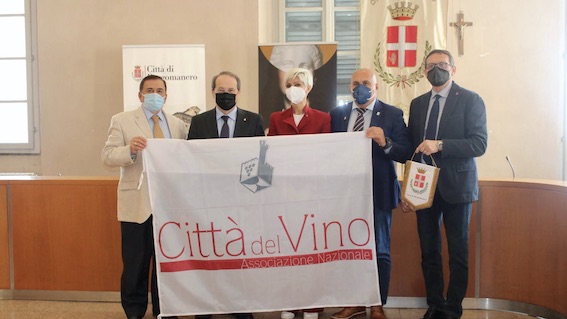 BORGOMANERO - 16-05-2021 -- Nella mattinata di venerdì 14 maggio Borgomanero è diventata ufficialmente Città del Vino. L’ufficializzazione è avvenuta nella Sala Consigliare di palazzo Tornielli. Presenti il Presidente dell’Associazione Nazionale Città del Vino Floriano Zambon, il vice Stefano Vercelloni e l’ambasciatore Valentino Guglielmini, il Sindaco Sergio Bossi e la Giunta, oltre ad alcuni produttori locali di vino e il presidente dell’Associazione Pasticceri.